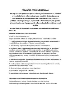 PRIMĂRIA COMUNEI IȘCALĂU Anunță concurs  pentru ocup...