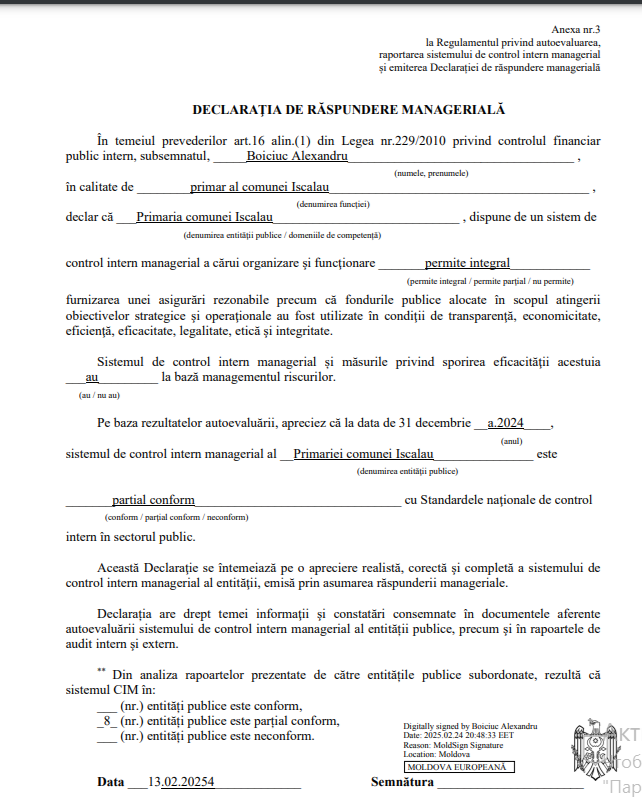 Fără categorie Declarația de răspundere managerială 26.02.2025 Publicat de Primaria Redactor 26 feb. an_3_04.signedDescarcă